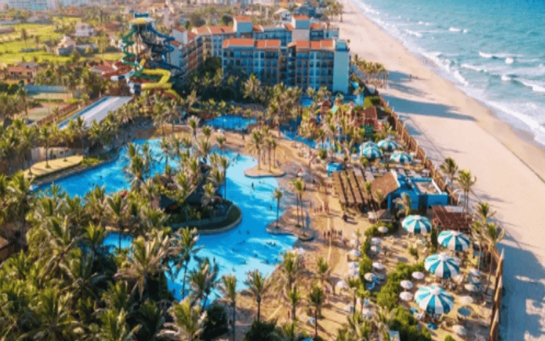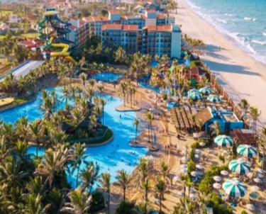 Resumo: Localizado em Aquiraz na Praia do Porto das Dunas, este complexo turístico conta com um belíssimo resort a beira mar, mas sua grande atração é o parque aquático considerado um dos maiores a beira mar. O Beach Park oferece diversão garantida para todas as idades com seus toboáguas, cascatas, rio artificial e tantas outras atrações como o famoso “Insano” e a grande piscina de ondas. (Não inclui ingressos de entrada).